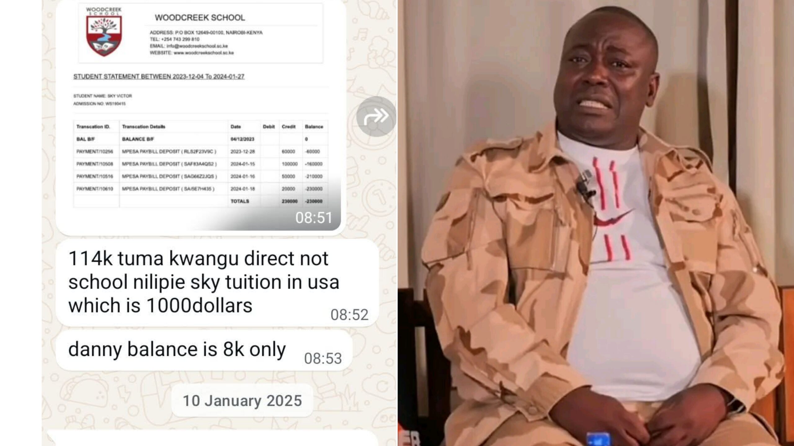The message has since gone viral, especially the line: “114k tuma kwangu direct… nilipie sky tuition in USA which is 1000 dollars.”